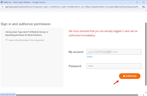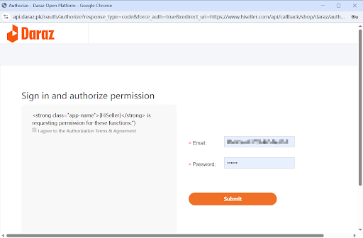 3. Input your Daraz seller account info and click Submit