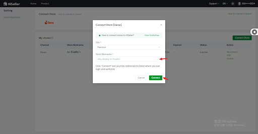2. Enter the customer shop name and click the Connect button, and you will be redirected to the Daraz website
