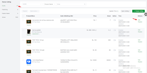 4. The product will then be copied to Drafts. Edit it and click Publish, and it will be published to the destination store