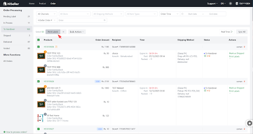 3. Return to the Order Processing page and click Print Label