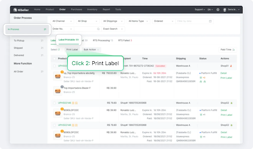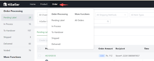 Go to HiSeller Order > Pending Label. Select your orders and click the [Create Label] button.
