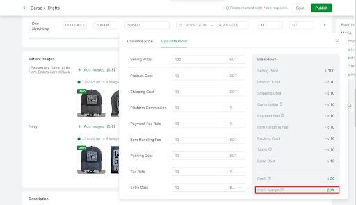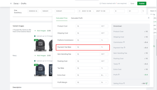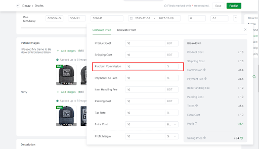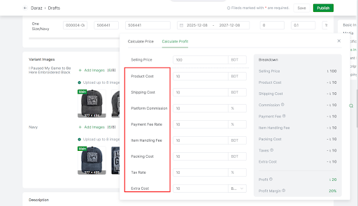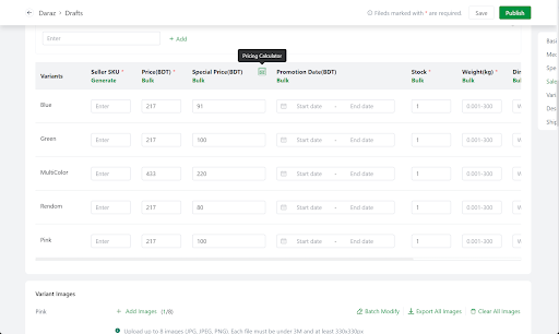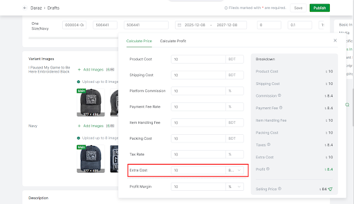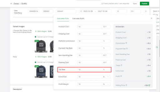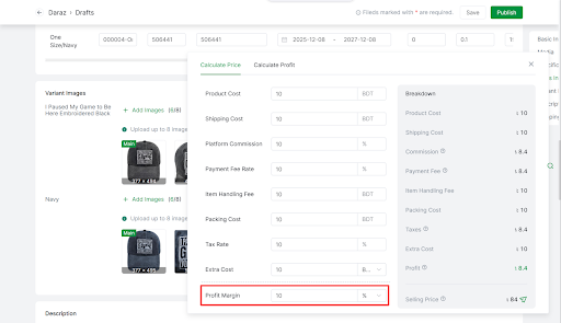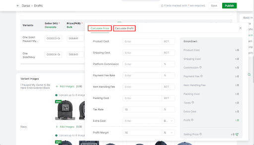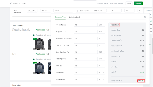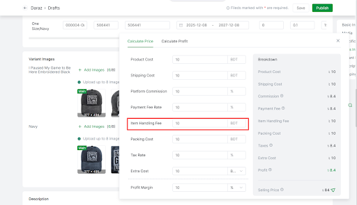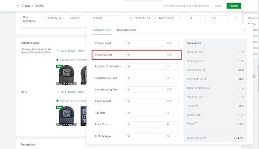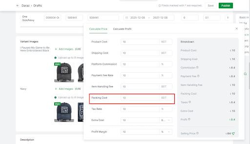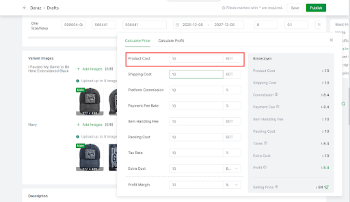 Selling Price: Input the Selling Price of your product. This is the price you plan to list your product for on Daraz.