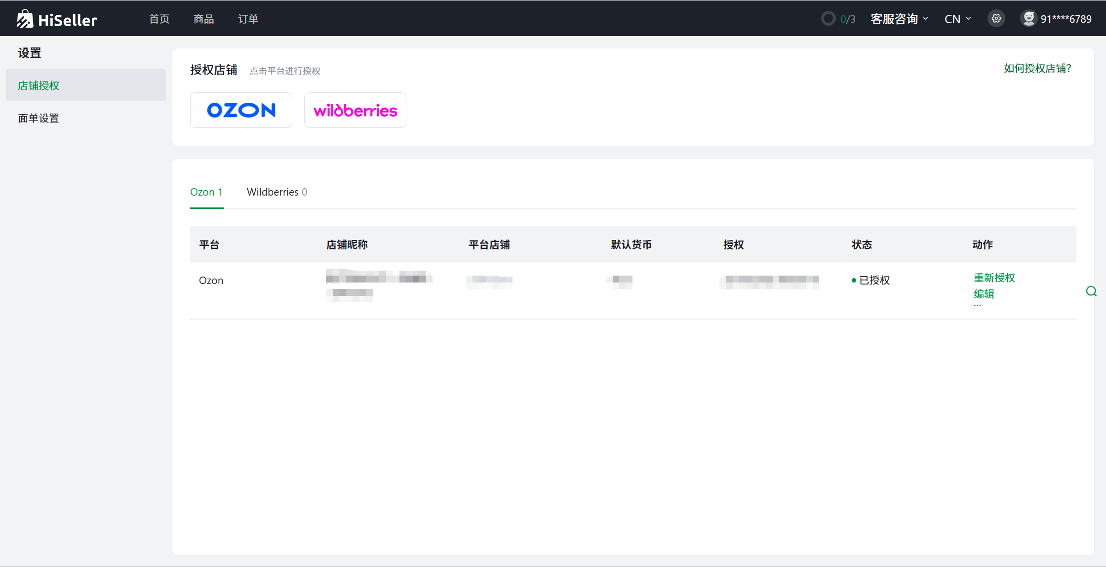 授权完成后,HiSeller可以同步30以内的订单以及所有产品。
